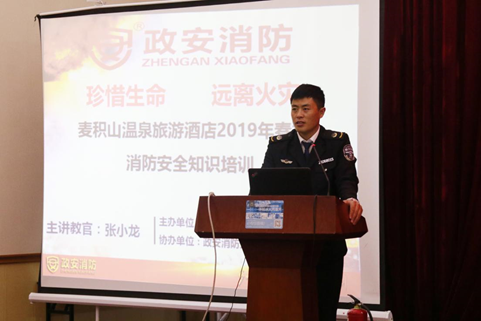 为切实增强公司消防清静治理,,,,,,,,普及消防清静知识,,,,,,,,进一步提升宽大员工的消防清静意识,,,,,,,,2019年3月25日下昼,,,,,,,,天水麦积山温泉旅游旅馆有限公司特约请政安消防专业消防职员为我公司员工举行了一场消防清静知识培训。。。。。。。。